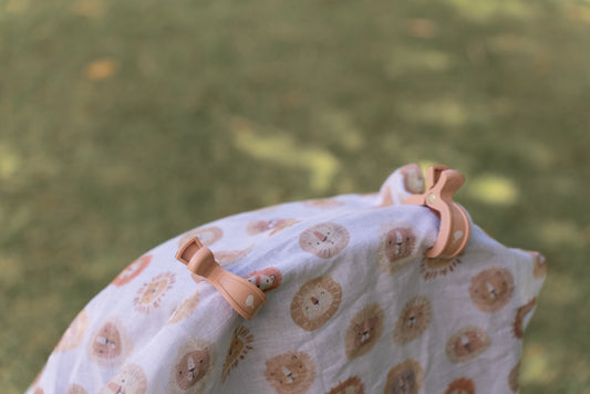 Lions Muslin Wrap & Latte Pram Clips Set