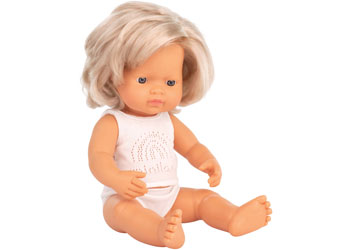 Miniland Doll - Anatomically Correct Baby, Blond Caucasian Girl, 38 cm