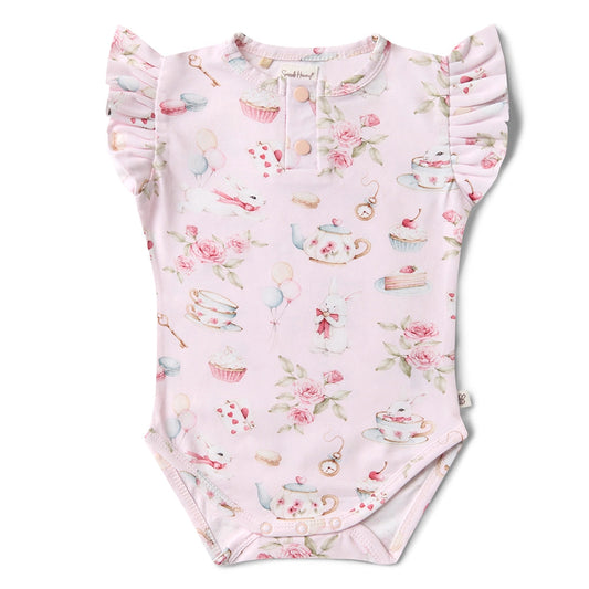 Alice’S Tea Party Short Sleeve Organic Bodysuit by Snuggle Hunny