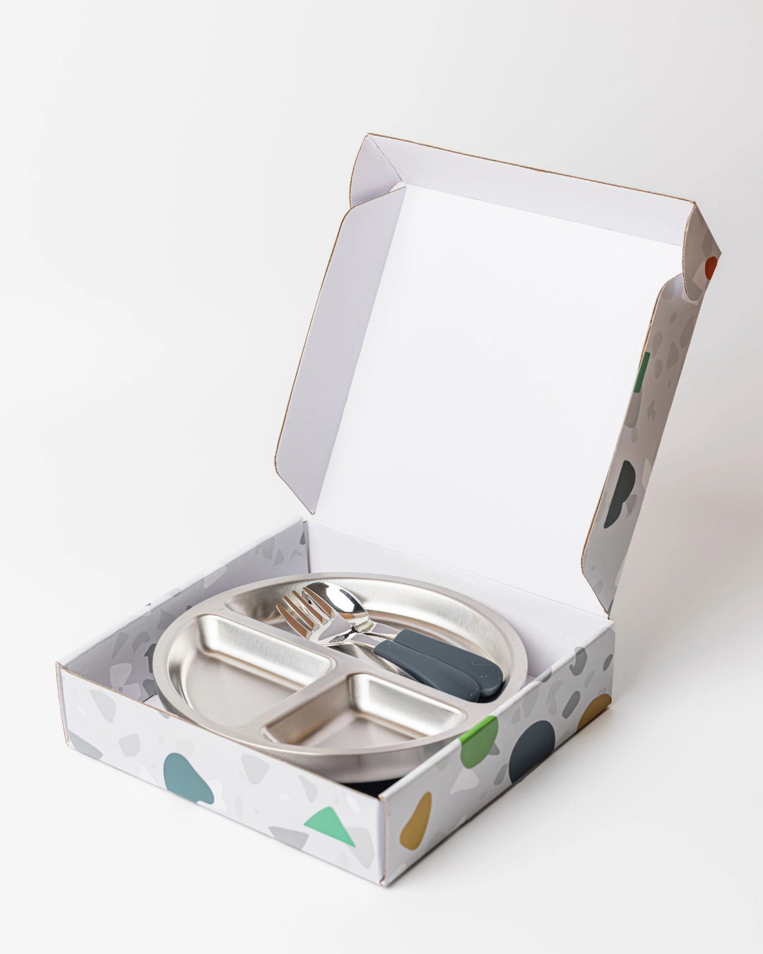 Indulge in the convenience of our 18/8 Stainless Steel Feeding Plate. With a toxin-free, food-grade silicone and 18/8 Stainless Steel spoon and fork, the plate suctions to any surface for a mess-free mealtime experience.