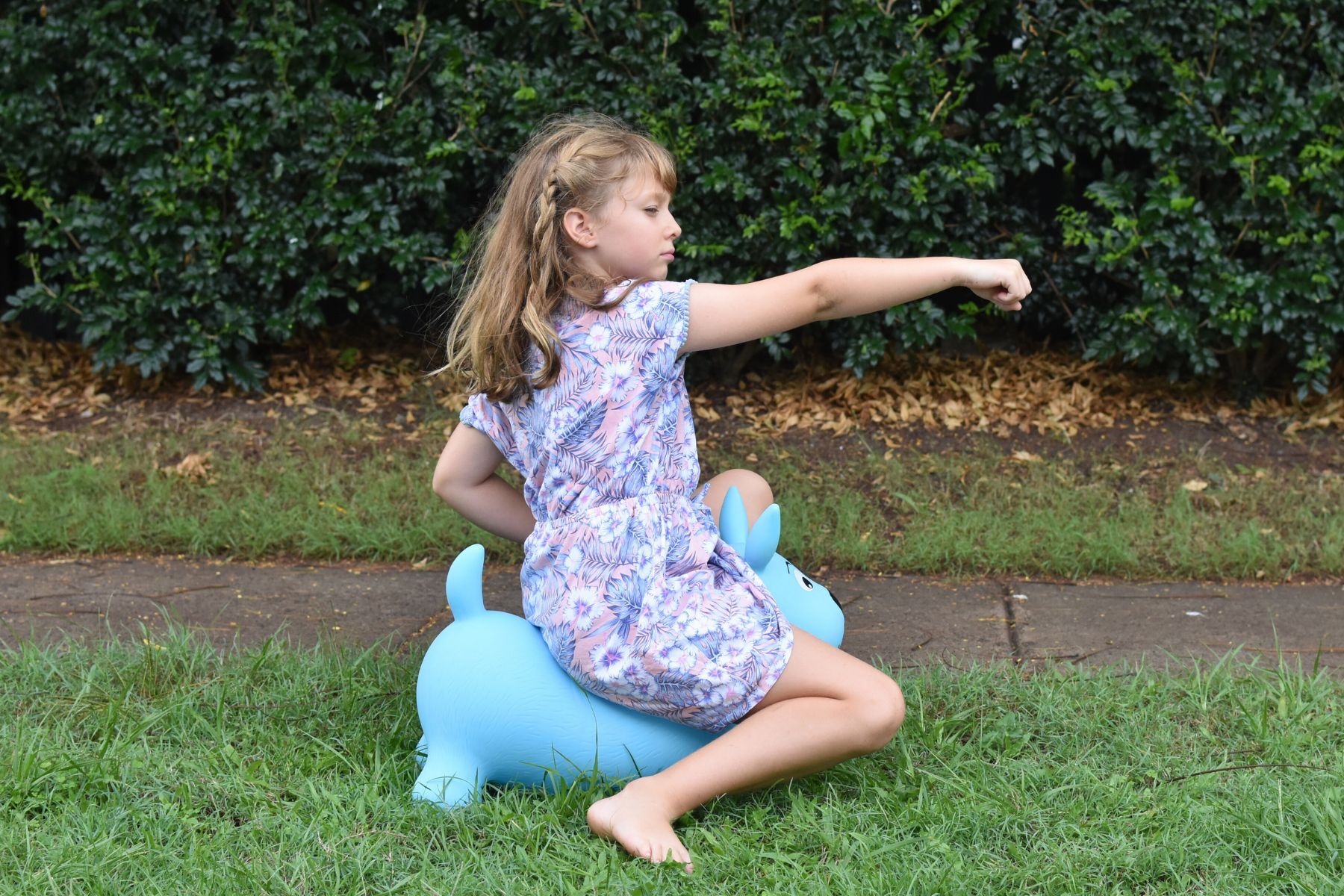 Introducing Ozzie the Blue Heeler Bouncy Rider by Kaper Kidz, a delightful inflatable ride-on companion that brings the spirit of a loyal canine friend to your child's playtime. With his charming blue color and adorable ruff ruff dog-themed scarf, Ozzie exudes playful charm and invites imaginative adventures.