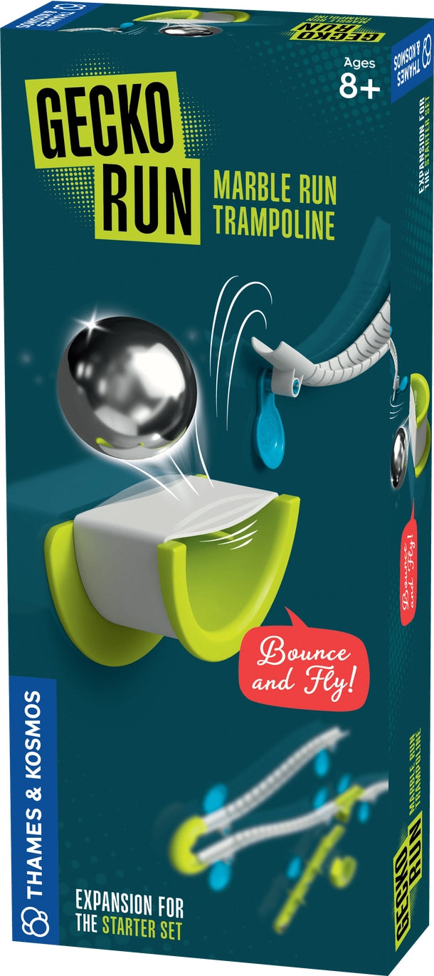 The trampoline adds a spectacular element to the track: How do I have to align the trampoline so that the balls fly particularly far or high? Can I even catapult the ball back to a higher section of the track? Exciting new questions for children aged eight and up to brainstorm! The instructions give the first kick with great ideas for the tricks. The great extra: Additional track elements increase the range of the KOSMOS marble track! Note: only playable with the Gecko Run "Starter Set" or the "Big Box".