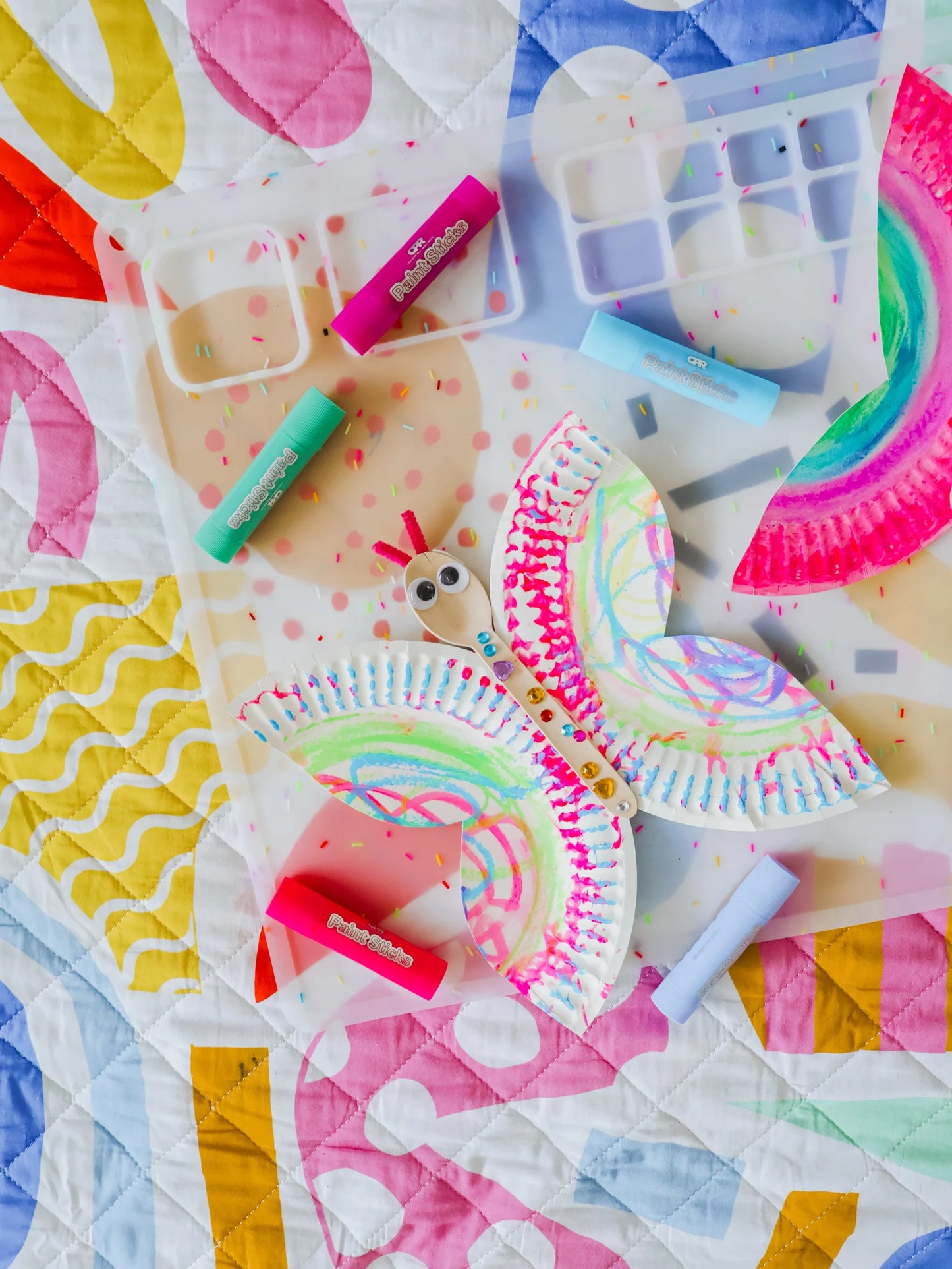 Our 24 pack of mess-free paint sticks offer a fun, safe, and creative way for kids to express themselves. Featuring 12 pastel, 6 fluoro, and 6 metallic colours, these twistable, non-toxic paint sticks are perfect for young artists. Their quick-drying formula ensures no mess, while they work on a variety of surfaces. Compact and portable, this set is perfect for on-the-go creative fun and makes an ideal gift for kids 3+. Let your child's imagination run wild with these vibrant, mess-free and stylish artistic tools! Designed with care in Australia, meets Australian toy safety standards.