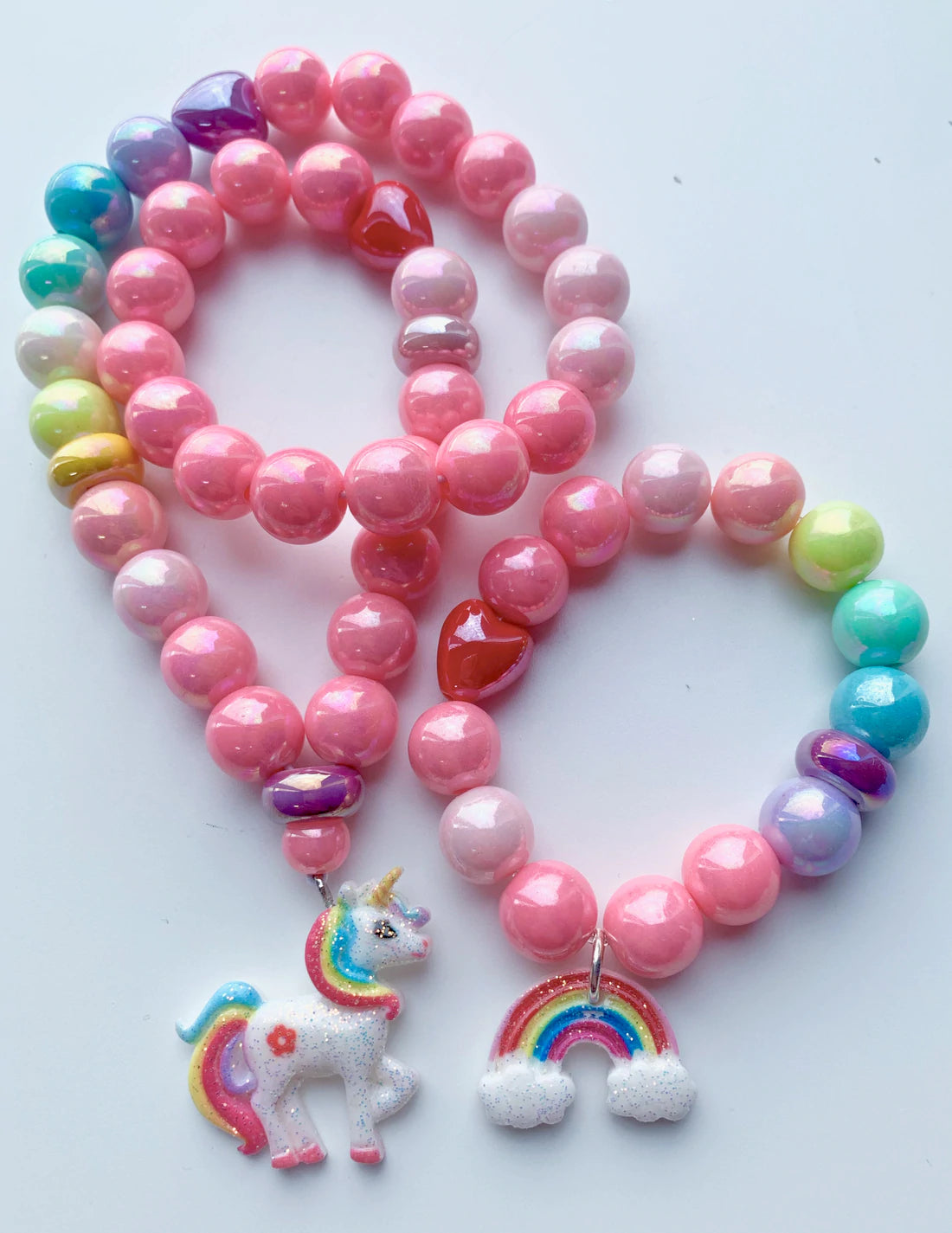 Handmade in bobble HQ with stretchy elastic, this necklace and bracelet set is easy to get on and off between outfit changes!