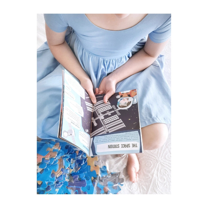 Go on an adventure in space like a real astronaut! Put together the 205 pieces of a fantastic puzzle, read the 32 page book and learn all about our universe.