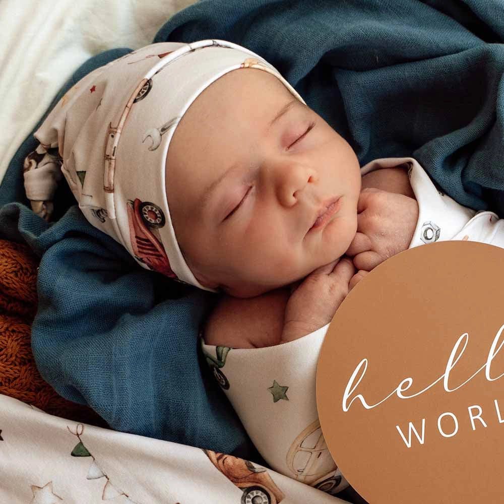 Vintage Cars Organic Knotted Beanie by Snuggle Hunny